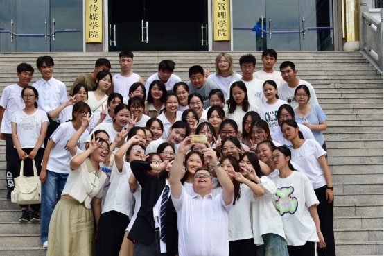 座谈会结束之后,麦多明先生与同学们在经济与管理学院门口进行了亲切的合影,现场气氛十分融洽。