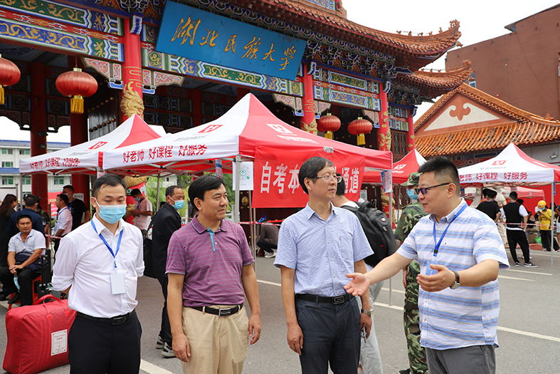在迎新现场,祝建波听取了继续教育学院、保卫处以及湖北财经专修学院等负责人关于迎新工作各环节的进展以及疫情防控工作情况的汇报,祝建波对本次迎新工作各部门的通力协作给予了充分肯定,并向辛勤工作在迎新第一线的工作人员和学生志愿者表示亲切慰问。