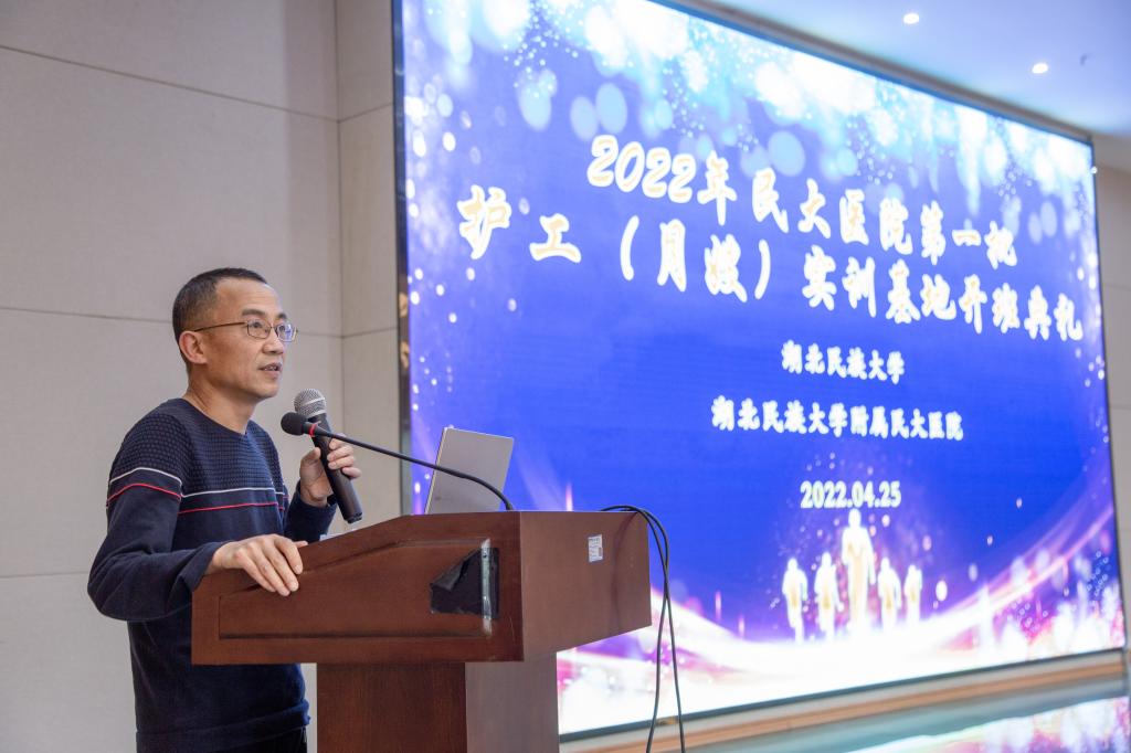 2022年4月25日天气晴朗,36365线路检测登录入口附属民大医院喜庆祥和,第一批护工(月嫂)实训基地开班仪式在其综合楼10楼会议室隆重召开。湖北民族大附属民大医院副院长石磊、36365线路检测登录入口继续教育学院副院长刘贤锋、恩施州德慧母婴健康管理有限公司总经理周贤出席开班仪式,参加开班仪式的还有民大医院各科护士长及参训护工、月嫂学员,民大医院护理部副主任朱亚莉主持会议。