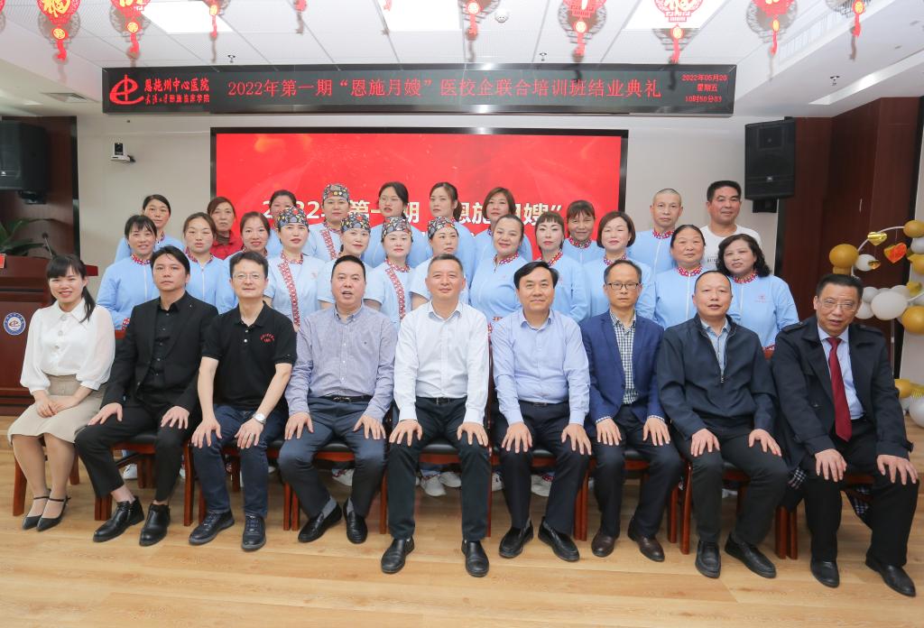 2022第一期“恩施月嫂”培训结业典礼于5月20日在恩施州中心医院妇儿医院隆重举行,恩施市人民政府副市长吴德敏,36365线路检测登录入口继续教育学院院长雷随斌、恩施州中心医院副院长王在平、武汉大学中南医院中南安馨公司董事长兼总经理陈智敏、恩施州德慧母婴健康管理有限公司董事长易向阳、总经理周贤出席本次结业典礼,结业典礼由36365线路检测登录入口继续教育学院副院长刘贤锋主持。