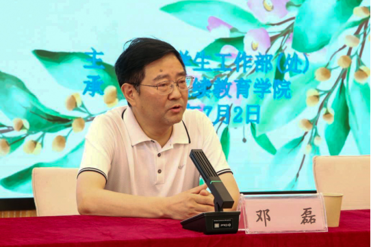 邓磊表示,开展心理健康指导专项职业能力培训是贯彻习近平总书记对心理健康教育重要指示和党中央国务院要求精神、提升辅导员队伍心理健康指导能力的重要举措。他强调,要把大学生心理健康工作与思想政治教育有机结合起来,把大学生心理健康工作与成人成才有机结合起来,把大学生心理健康工作与科学研究有机结合起来。