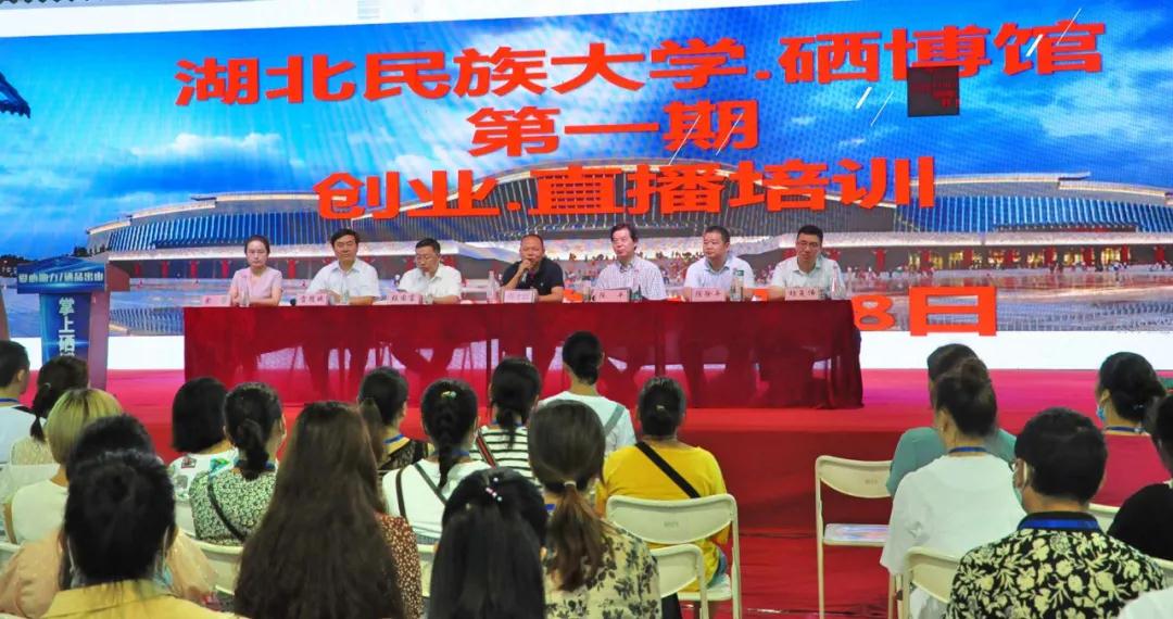 7月28日,在州人力资源和社会保障局、州硒资源保护与开发中心、州公共就业和人才服务局的指导下,由36365官网和州文化中心硒博馆共同举办的第一期“千星万红”创业·直播带货培训开班典礼在硒博馆顺利举行。36365线路检测登录入口继续教育学院院长雷随斌,恩施聚硒商业管理有限公司董事长周才红、总经理张国富,人社部国家级项目培训导师陈平、陈徐平、杨复伟和来自恩施各县市的120余名培训学员出席开班典礼。