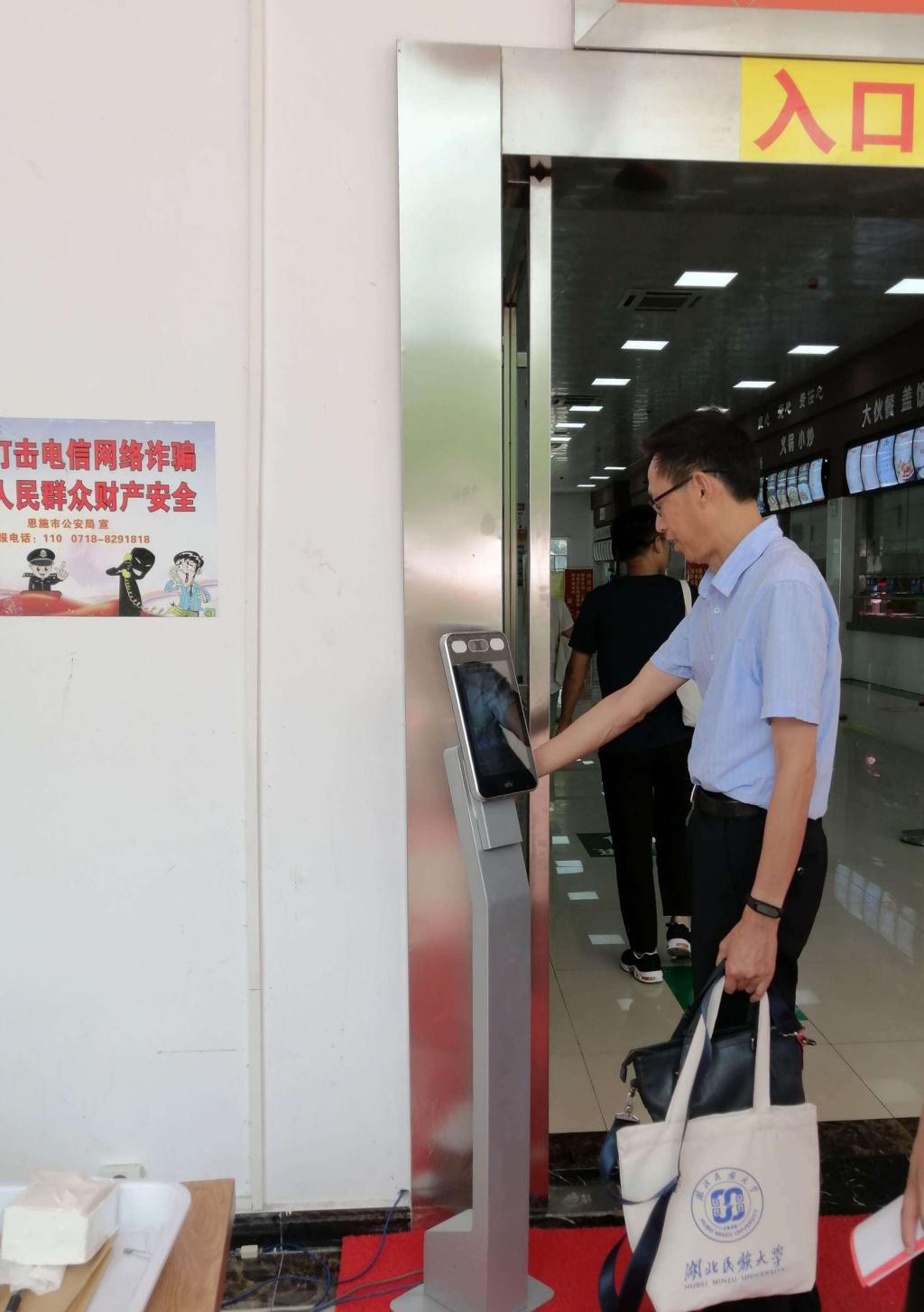 按照防疫要求学员测温就餐