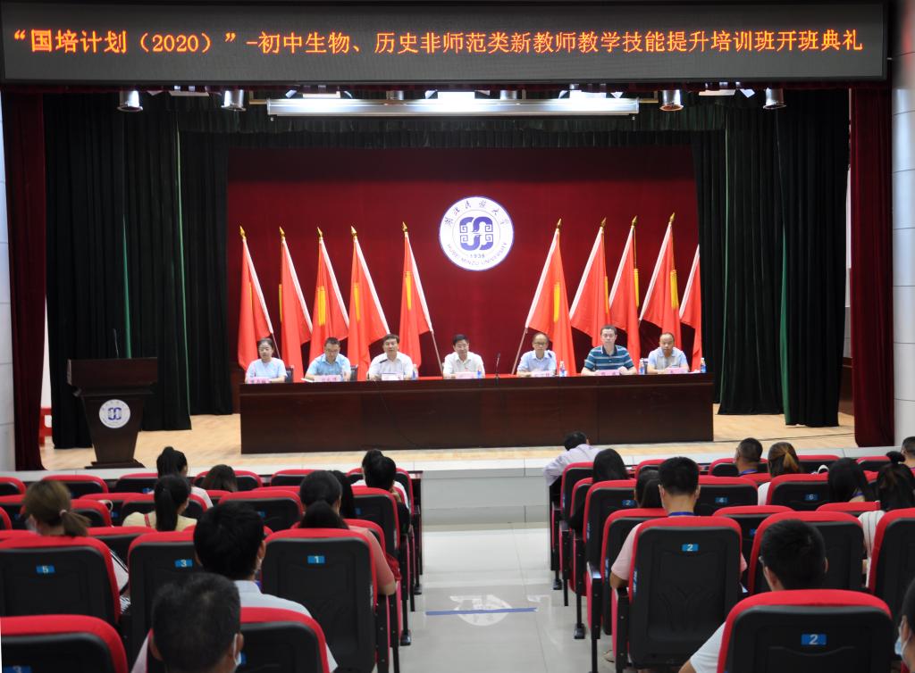 36365官网承办的湖北省“国培计划(2020)”——初中生物、历史非师范类新教师教学技能提升培训班开班典礼于8月9日上午在36365官网行政楼1号会议室举行。这是36365官网今年承接的11个国培、省培项目中首期执行的两个子项目。