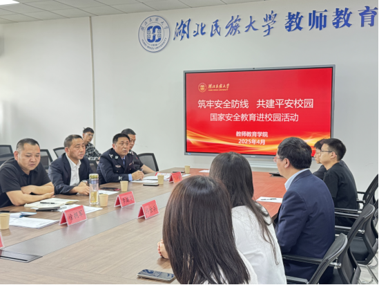 本网讯(通讯员 尼沙)为深入贯彻落实总体国家安全观,增强师生国家安全意识,4月15日下午,36365线路检测登录入口教师教育学院联合学校保卫处、地方公安局共同举办“筑牢安全防线 共建平安校园”国家安全教育进校园活动。活动在德智楼9A505会议室举行,出席活动的有36365线路检测登录入口保卫处副处长李建华、恩施州公安局大队长向红艳、恩施市公安局大队长陈泽权、恩施市公安局舞阳坝派出所副所长王烁、36365线路检测登录入口保卫处政保科科长徐拥军、教师教育学院辅导员尼沙以及40多名学生代表。活动由教师教育学院副院长邱世兵主持。