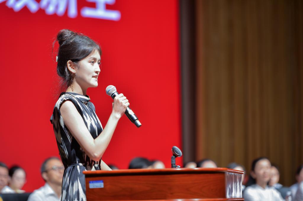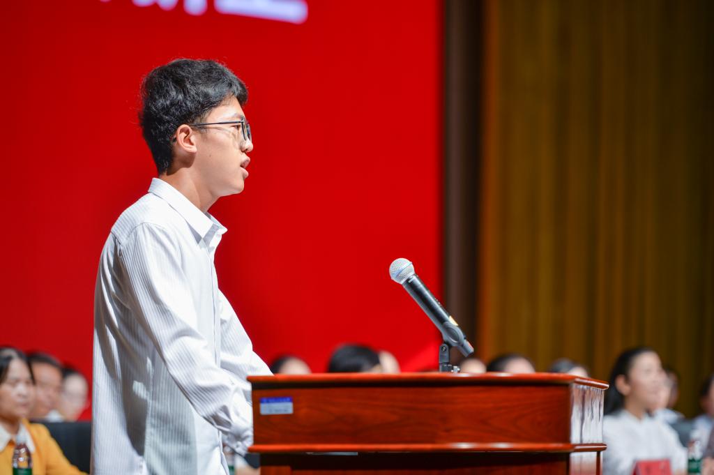 2021级小学教育专业的王佳雯作为老生代表上台发言,她感慨两年的时光飞逝,但是与老师同学习、与学院同成长的情景历历在目。她深感在大学期间要提高自己的行动力,知者行之始,行者知之成,青春靠行动绽放,最终才可硕果累累;要提高自己的调节力,不惧负面情绪,不因低谷而颓废,积力蜕变,走向下一个高峰;要提高自己的学习力,吾生也有涯,而知也无涯。希望2023级同学们传承并弘扬博学博爱、立人达人的学校精神,不怕苦、能吃苦、斩艰难、敢奋斗,跑出青春的加速度。