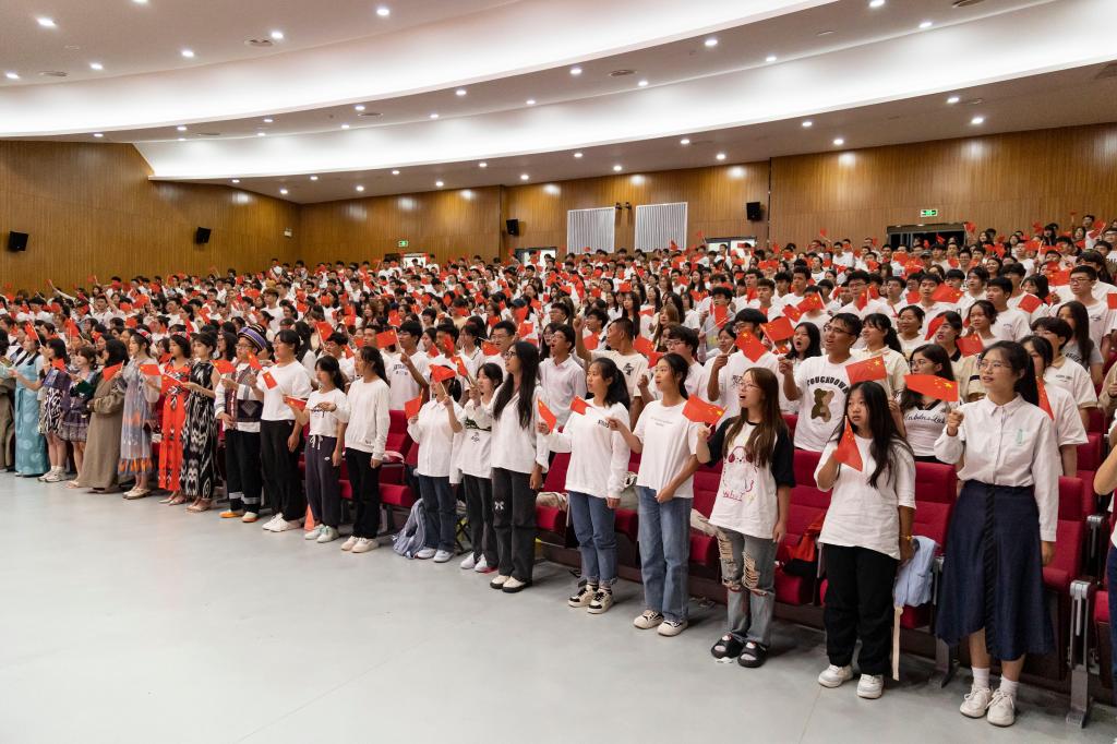 在全体合唱《我和我的祖国》的歌声中开学典礼圆满结束。