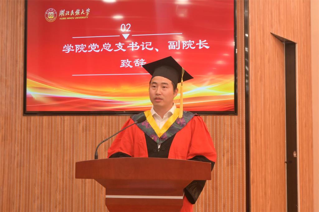 教师教育学院党总支书记宁华宗以《伸手摘星 躬身笃行》为题热情致辞。他感慨岁月倥偬,时光蹁跹,一路纷繁与迫促,同学们用青春的韵律弹奏了一曲“我的大学”主打歌。他勉励同学们在未来的日子里胸怀梦想,心有大我,逐光前行;不忘初心,尊师重道,弘文励教;坚韧向上,热爱生活,清净内心。他衷心祝愿毕业生们一路平安,一路繁华。