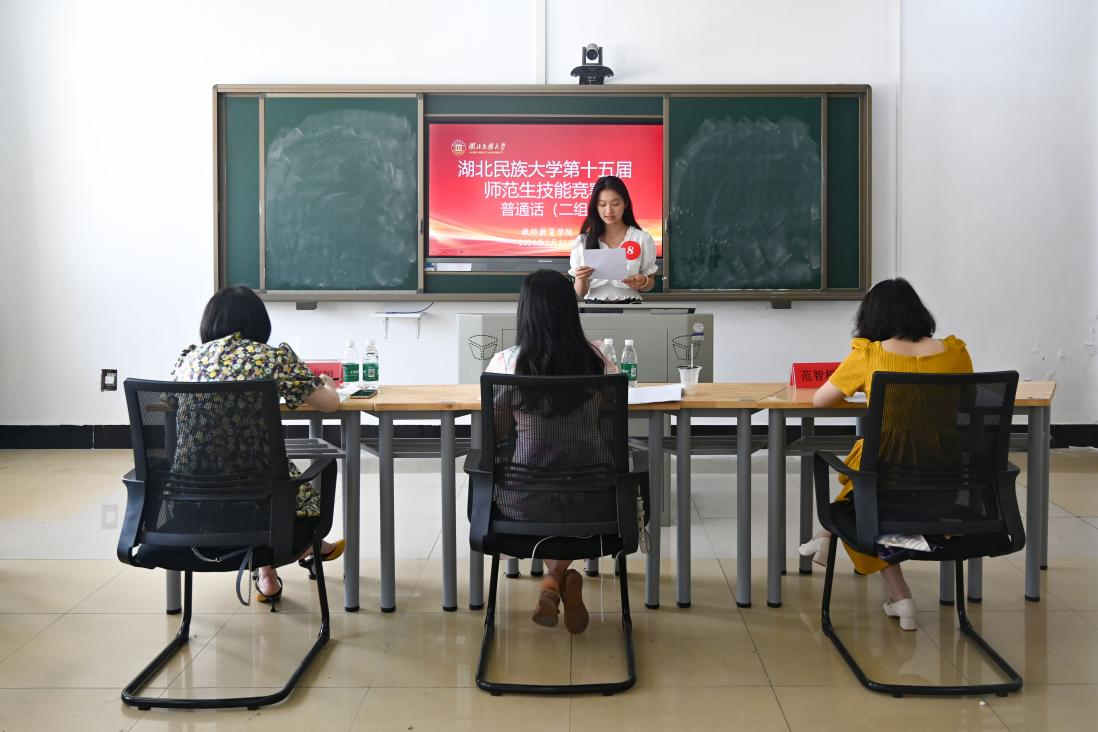 竞赛项目分为教学综合技能、三笔字、普通话三个部分,各师范专业学生在大赛上绽放光彩。其中普通话竞赛分为朗读、即席讲演两个环节,主要考验选手们的应变能力和心理素质。此次活动充分发挥技能竞赛对提升职前教师成长的引领示范作用,充分调动师范生专业学习的能动性、积极性与创造性,增强师范生的核心竞争力。