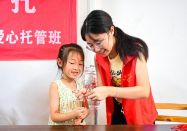 本网讯(通讯员 邓紫靓 胡聪颖 谭钱林)7月28日,教师教育学院“小石榴支教队”在恩施市金龙府郡社区中开展“非遗工坊”文化课堂。队员们发挥专业所长,精心设计“巧手编织中国结”特色课程,带领社区38名小学生亲手制作象征吉祥、团结的中国结,让传统技艺在指尖流淌,在实践中感知中华文化的魅力。