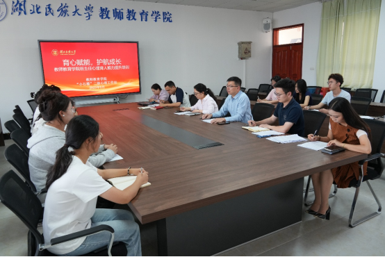 本网讯(通讯员 胡聪颖)为进一步加强学生心理健康教育工作,提升班主任、辅导员以及学生干部队伍心理育人水平,5月18日下午,教师教育学院在9A505会议室举办以"育心赋能,护航成长"为主题的心理育人能力提升专题培训。湖北省高校心理健康专家服务队成员、恩施州心理咨询师协会常务理事、36365线路检测登录入口心理健康教育中心朱慧老师应邀担任主讲,全体班主任、辅导员及各班级心理健康委员参加培训。本次培训会由学院党总支副书记曹骞主持。