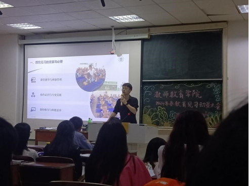 5月19日晚,学院召开了小学教育专业本科生2024年春见习动员大会。会上,副院长邱世兵、党总支副书记曹骞表达了对学生们的殷切期盼,希望同学们能够沉浸式感受教育的魅力与挑战,充分展示自己的师范技能与素养,在见习实践中学习成长。