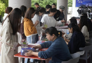 为增加用户粘性,图书馆特别设置了小礼物赠送环节。除了有需求的考研学子可以领取考研全套书籍外,其他读者还可以通过关注图书馆公众号领取定制书签、童年玩具、笔记本、水杯等文创礼品。现场一波又一波师生积极挑选,互相交流。“哎,还有溜溜球,好久没玩了!”一名学生惊讶道。全程不到30分钟,不管是书籍还是众多小礼品几乎被领取完。还有陆续过来的学生面对所剩无几的礼品桌意犹未尽,只能表示下次活动早来参与。