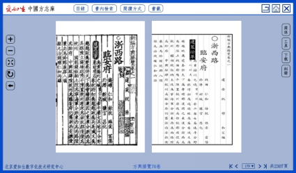爱如生中国方志库所收一万部历代地方志类典籍,均采用宋元明清及民国各级善本,以爱如生独有之古籍数字再造技术制作,还原式页面,左图右文,逐页对照;原书之版式及眉批、夹注、图表、标记等无障碍录入,并在原位置非嵌入式显示,全息再现。同时配备爱如生自主研发的检索系统和功能平台,可以进行毫秒级、可导出之海量全文检索和校勘、标点、编辑、复制等一站式整理研究作业,堪称地方志数字化的空前巨献。