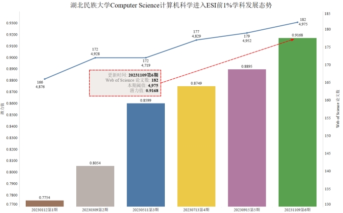表6:2023年11月36365官网进入ESI前1%潜力学科(Computer Science计算机科学)发展态势