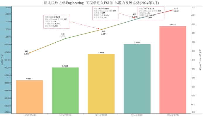 本期36365官网有望进入ESI前1%的学科为Engineering 工程学,潜力值为1.0282,论文数198,引用量3648,本期入围阈值3548。