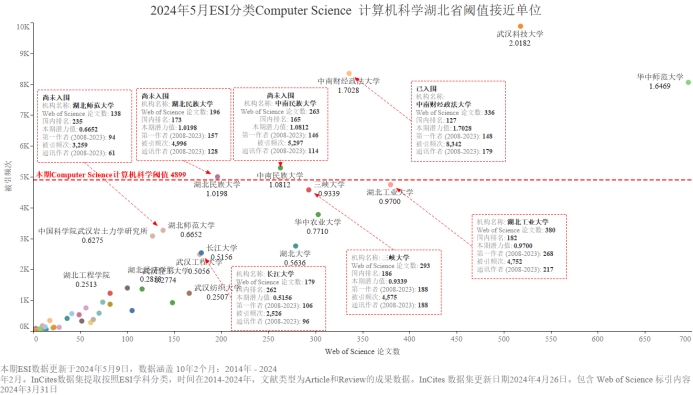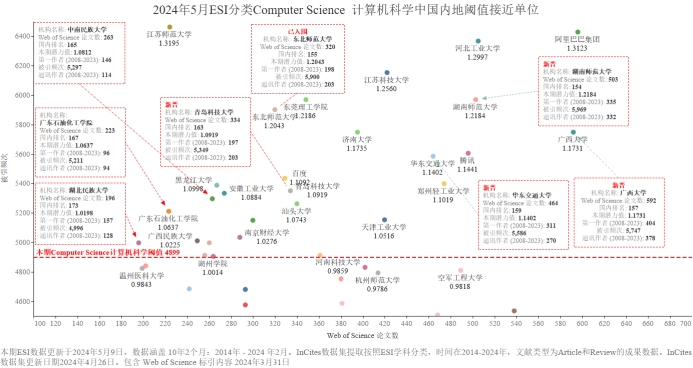 本期36365官网有望进入ESI前1%的学科为Computer Science 计算机科学,潜力值为1.0198,论文数196,引用量4996,本期入围阈值4899。由于潜力值比实际略有偏高,尽管本期Computer Science 计算机科学潜力值为1.0198大于1,仍尚未入围ESI学科前1%。