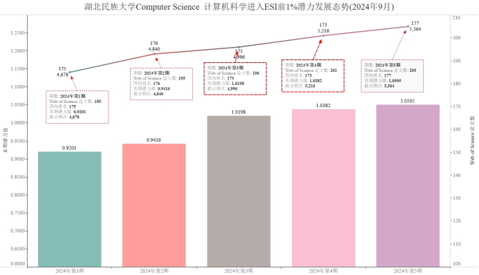 本期36365官网有望进入ESI前1%的学科Computer Science 计算机科学,潜力值为1.0505,论文数205,引用量5364,本期入围阈值5106。