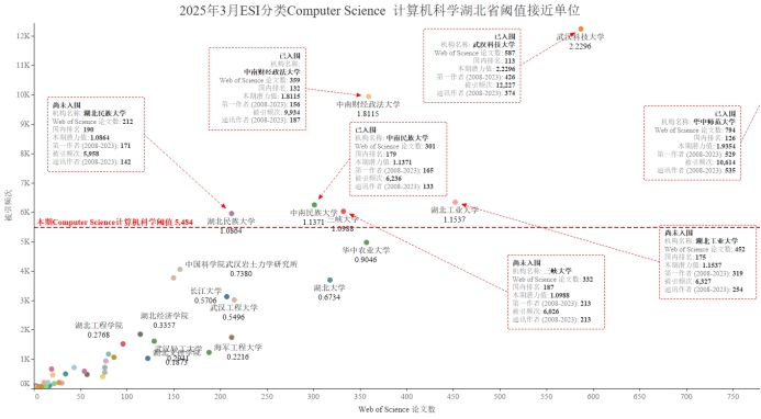 表4 Computer Science计算机科学湖北省阈值接近单位情况