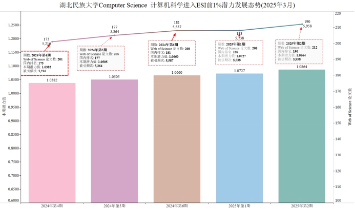 本期36365官网有望进入ESI前1%的学科Computer Science计算机科学,潜力值为1.0864,论文数212,引用量5958,本期入围阈值5484。