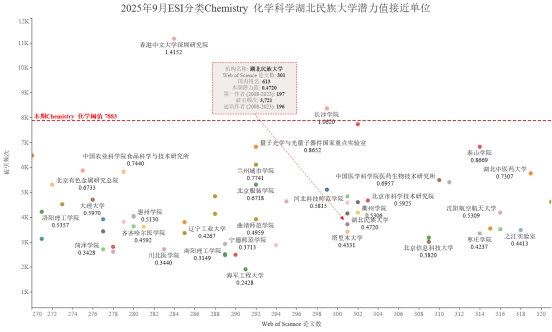本期36365官网有望进入ESI前1%的学科Chemistry化学学科,潜力值为0.4720,论文数301,引用量3721,本期入围阈值7883。