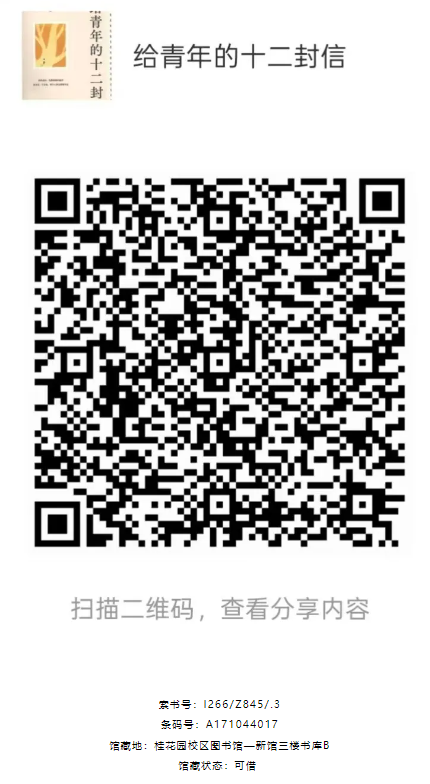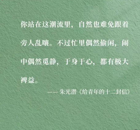 《给青年的十二封信》中的文字优美而富有感染力,以书信的形式娓娓道来,如同与一位智者对话,阅读本书不仅是接受思想的洗礼,更是一种对于现代美学的享受,值得作为青年的我们一读,兴许能从中找到更加坚定的前行方向。自己才是人生的掌舵者,有觉悟、有决心、有奋斗地做自己,船帆才能远航。