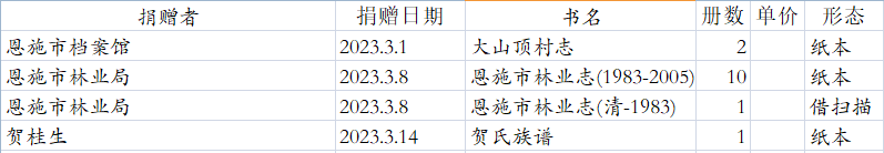 感谢恩施市林业局等捐赠图书