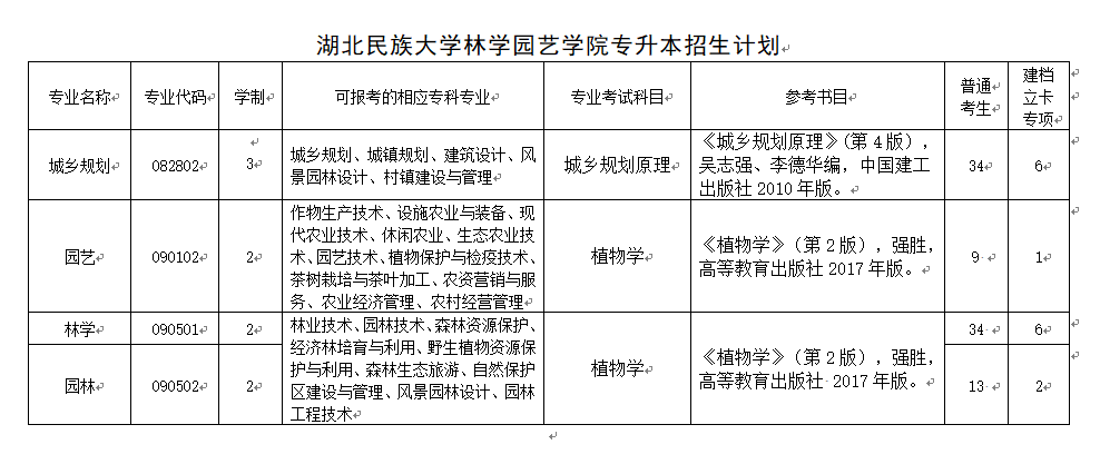 据悉,我院今年专升本计划招生105人,涉及林学、园艺、园林、城乡规划4个专业。