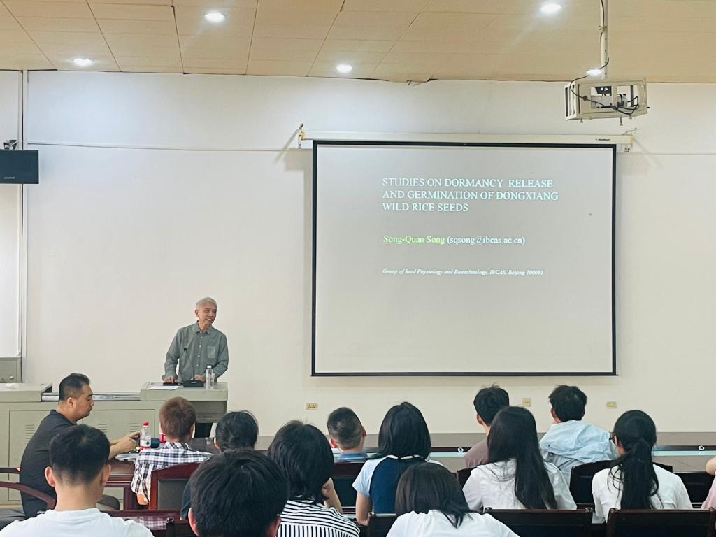 宋教授报告的题目是“种子休眠释放与萌发的研究进展”,他分别从种子休眠的特征、休眠的类型、休眠的激素调控和东乡野生稻种子的休眠释放及其转录组研究4个方面进行了详细的介绍。