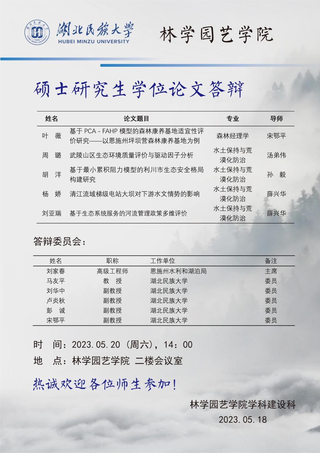 林学学科2023年硕士学位论文答辩公告(四)