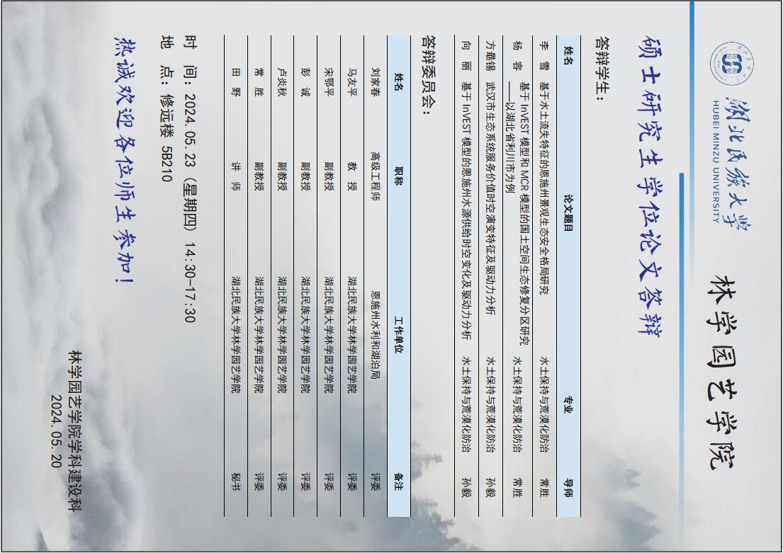 林学园艺学院2024届硕士研究生学位论文答辩公告(四)