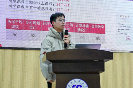 贺子墨从思想政治、专业学习、干部工作、科研竞赛、志愿实践五方面进行分享。提出要合理安排时间、认真上好每一节课、提高绩点。鼓励同学们从感兴趣和能收获的角度去选择未来,希望学弟学妹们能相信自己的潜力,保持谦虚且上进。
