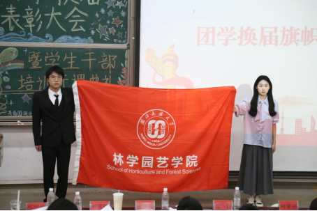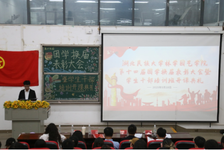本网讯(通讯员 谭玉兰 宋雯淇 / 文 唐国家 / 图)为提升学院学生工作水平,加强团学干部队伍建设,通过树立先进典型发挥示范引领作用。5月18日,林学园艺学院第十四届团学组织换届大会暨学生干部培训开班仪式在5B508教室召开。学院党总支副书记胡海剑、学生科科长胡靖偲、团委书记秦松、学生科辅导员刘蒙恩、邢续净出席,全体团学干部及学生代表参会。