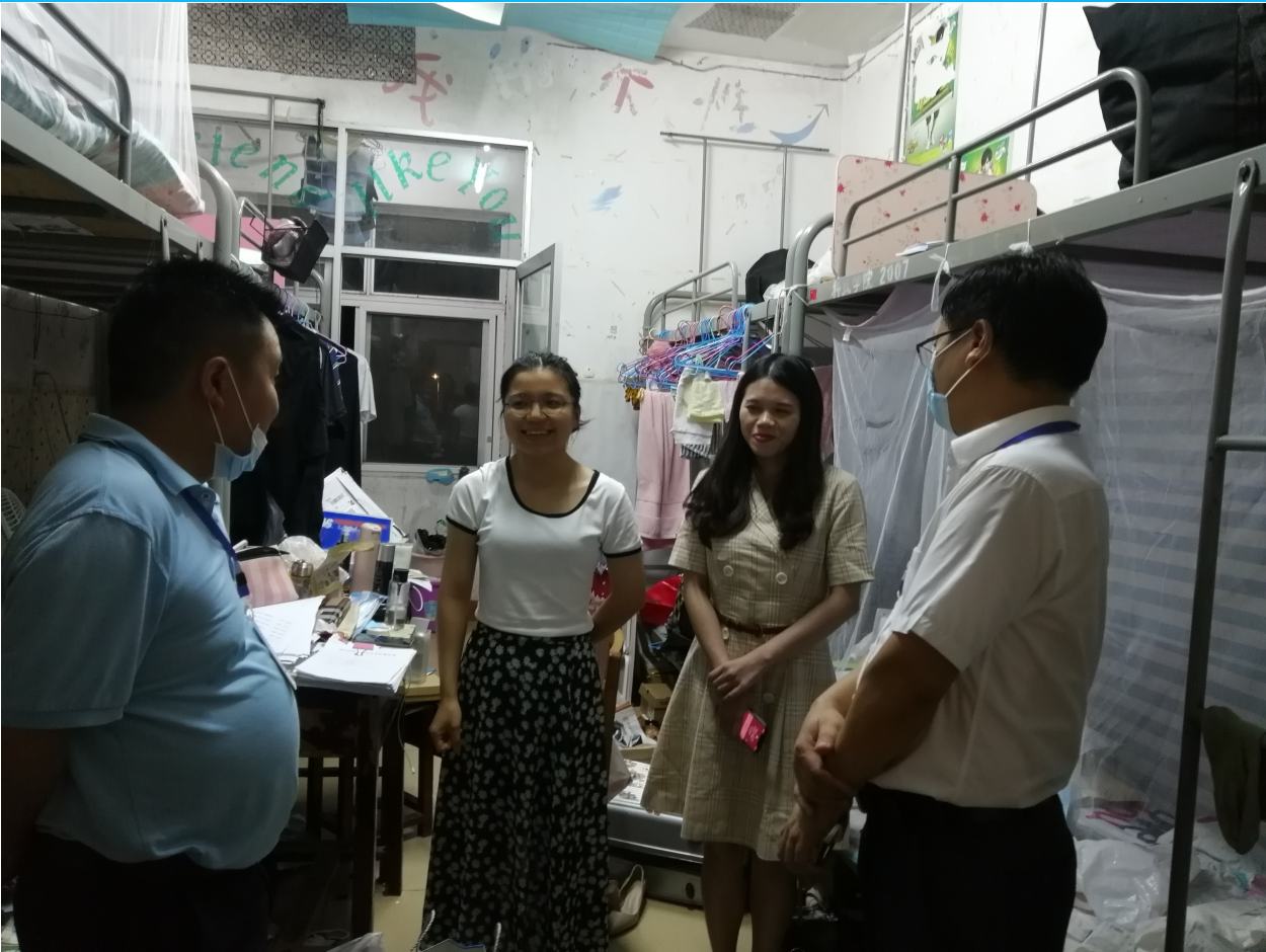 22日晚,学院领导书记赵魁轩,副院长魏代俊带着水果探访学生寝室,了解学生情况,解答学生疑惑,为学生传递关心与温暖,交谈甚欢。赵书记表示“心存梦想,砥砺前行,不负韶华”是学院对毕业生们最诚挚的祝福,也是对他们未来的希冀。同时学院老师也勉励2020届毕业生在未知的世界中继续砥砺前行,在青春的征途中脚踏实地,在成长的道路中振翅高飞。