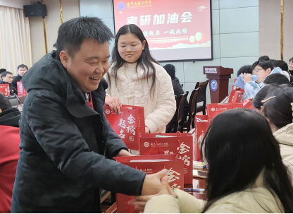 最后,由学院参会的各位领导老师向全体考研学生发放“考研加油包”。
