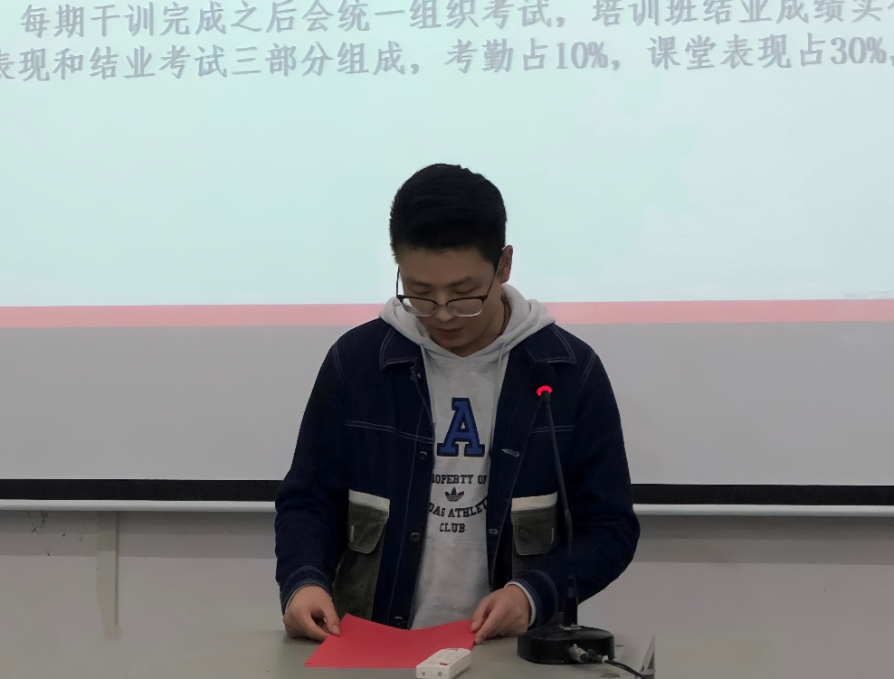 廖祥宇宣读《36365线路检测登录入口数学与统计学院学生干部培训班章程》,阐述学生干部在纪律、学习与考核等方面的综合安排方案,明确培训的目标与宗旨;李子君宣读《36365线路检测登录入口数学与统计学院学生干部培训班管理办法》,强调学生干部应诚信学习、遵守规定、支持团总支工作,以期规范培训流程及培训效果。
