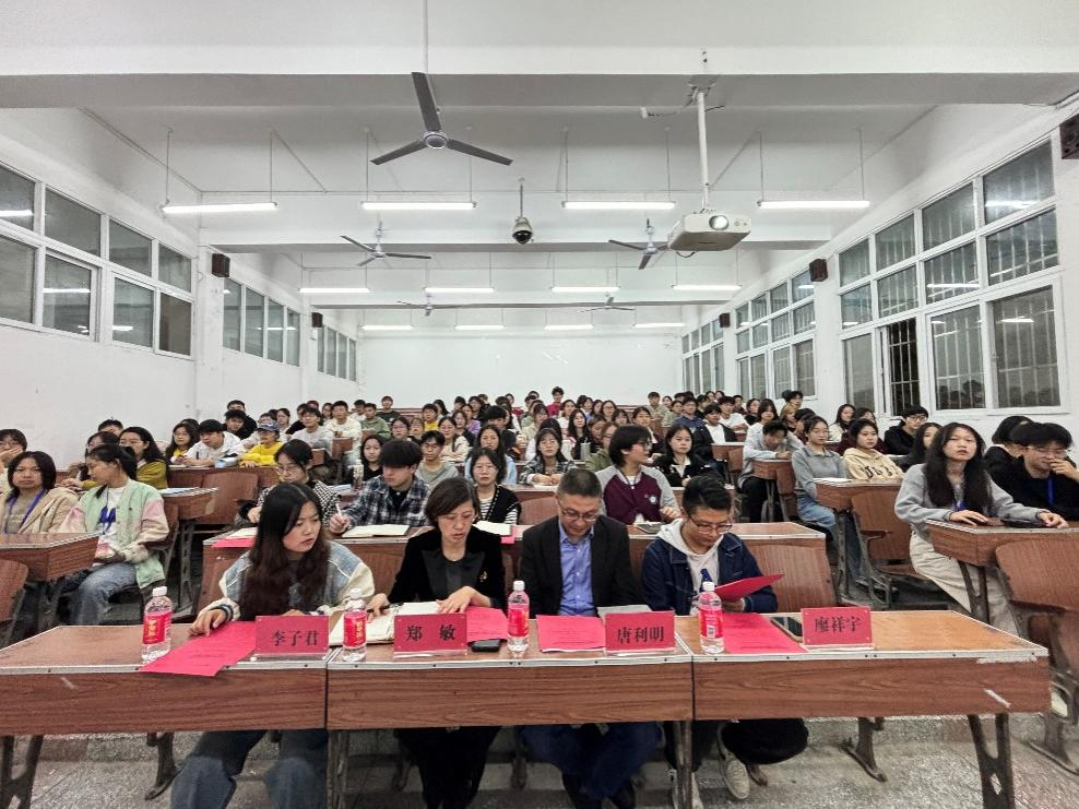 10月24日晚,为提高新一届学生干部的综合素质与工作能力,帮助他们完成从普通学生到学生干部的角色转变,学院在3308教室开展第十八期干部综合素质培训班开课典礼暨第一次授课。数学与统计学院党总支副书记、院长唐利明,数学与统计学院党总支副书记郑敏,数学与统计学院第一党支部书记、学生科辅导员廖祥宇,数学与统计学院学生第二党支部委员、团总支书记李子君出席本次开课典礼,2024级全体学生干部到场聆听。