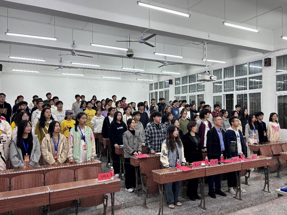 (全体师生齐唱国歌)