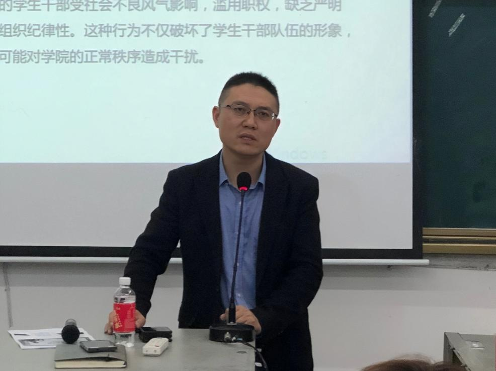 随着开课典礼的顺利落幕,学生干部培训正式进入授课环节,由唐利明院长为学员们讲授干部培训第一堂课。他依次从“学生干部应扮演的角色、担任学生干部的好处、学生干部必备素质、学生干部存在的问题”这四个方面进行详细的讲解,并在此过程中穿插多个实例,使大家深刻意识到自身的职责所在及存在的问题。他着重强调作为新时代的学生干部,大家应当时刻以责任感和使命感为先,恪守学生本分,做到“胜其任,担其责”,正确引领班上学生端正学习态度,带领新一届学生一同打造学院良好学习面貌与优秀学风。并指出以往学生干部存在的政治素质不强、组织纪律性欠缺、服务意识差、责任感不足等问题,以此警示在座的各位学生干部,应以自己最积极的姿态迎接各种事务。
