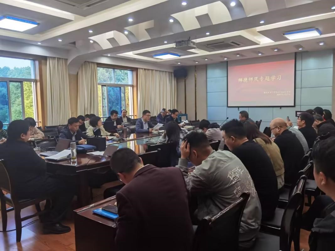 唐利明在讲话中强调,师德师风建设实行“一票否决制”,绝不能出现任何疏漏。他从政治立场、意识形态、工作作风、生活作风及学术诚信等多个方面,深入剖析了师德师风建设中可能存在的风险点,要求全体教职工严格遵守各项规章制度,牢记自己作为高校教师的职责,不抱任何侥幸心理,筑牢防线,守住底线,不越红线。