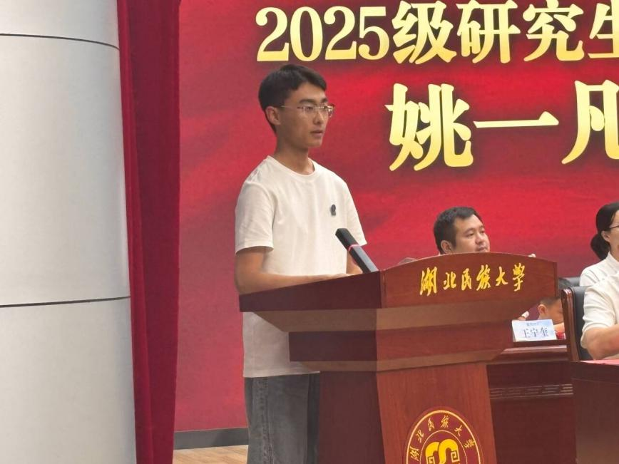 2025级研究生新生代表姚一凡分享了对研究生生活的理解,强调坚守学术初心,学会自我负责、正视挫折、关爱身心健康。本科生新生代表何京阳表达了对师长们的敬意以及刻苦学习、奋发向上的决心。
