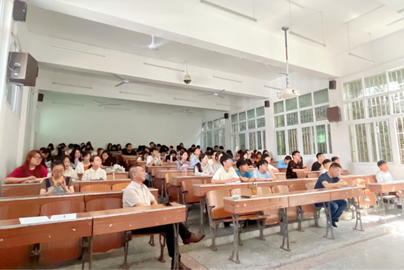 本网讯(记者 叶晏杞 吴杰/文 叶晏杞 吴杰/摄 )6月9日上午,我院在3307教室成功举办“教师成长漫谈”讲座。湖北省十堰外国语学校总经理、郧阳区政协委员郭峰老师担任主讲人,我院院长魏代俊同志主持。