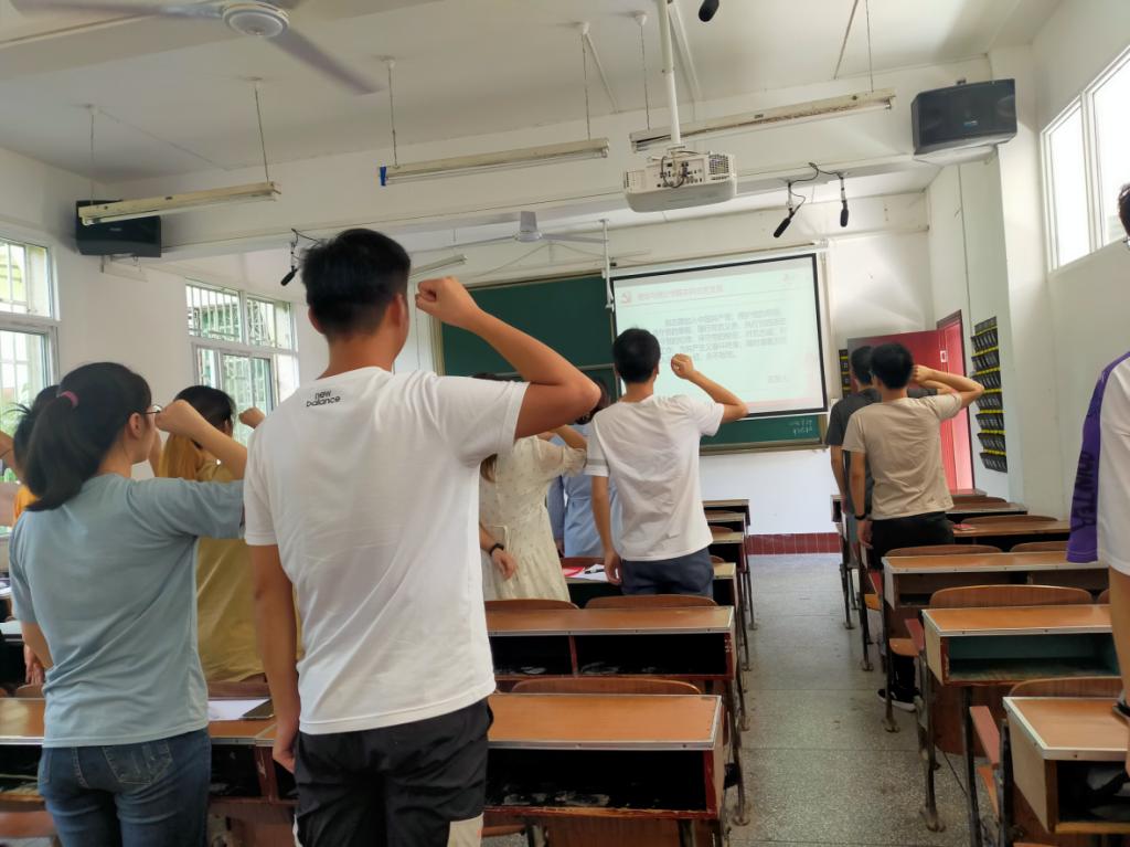 会上,首先由支部书记黄丽娜同志带领全体党员重温入党誓词。
