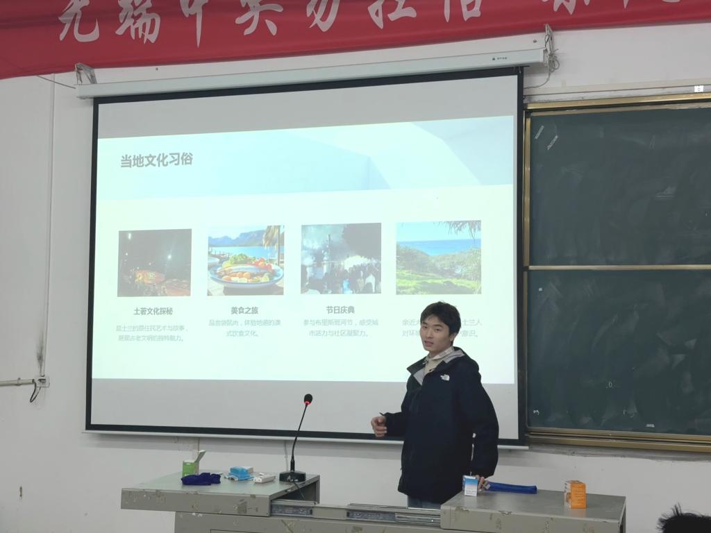曹旭阳同学则以详实的内容和丰富的实例,为大家呈现了从访学前准备到访学后的全景式体验。他详细介绍了课程学习的过程,还分享了在当地文化融入方面的收获,例如参与当地节日庆典所带来的文化碰撞,以及如何适应当地的生活习惯。在技能提升方面,他提到访学期间不仅增强了自己的语言能力,自主学习能力也得到了显著提升。