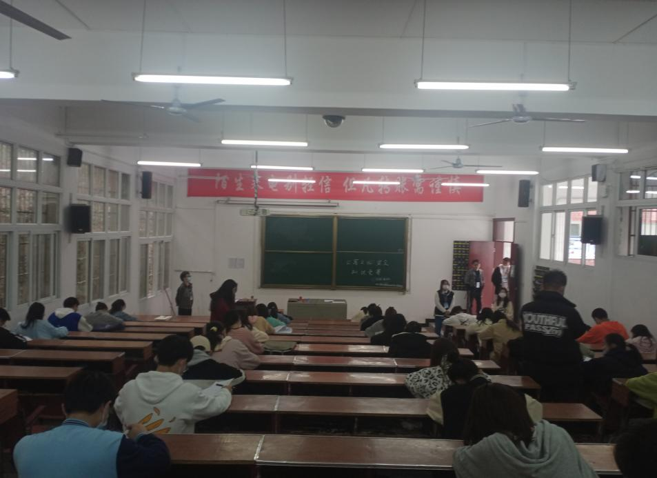 本次竞赛采用试卷考题的方式让参赛选手进行现场答题,由公寓管理委员会的学生干部负责监考,以公寓文化安全知识作为考题。100名参赛选手在考场内按顺序就坐,自觉遵守考试纪律并且认真答题。