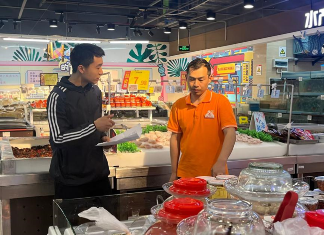 (团队成员向超市负责人了解酱菜的相关知识)