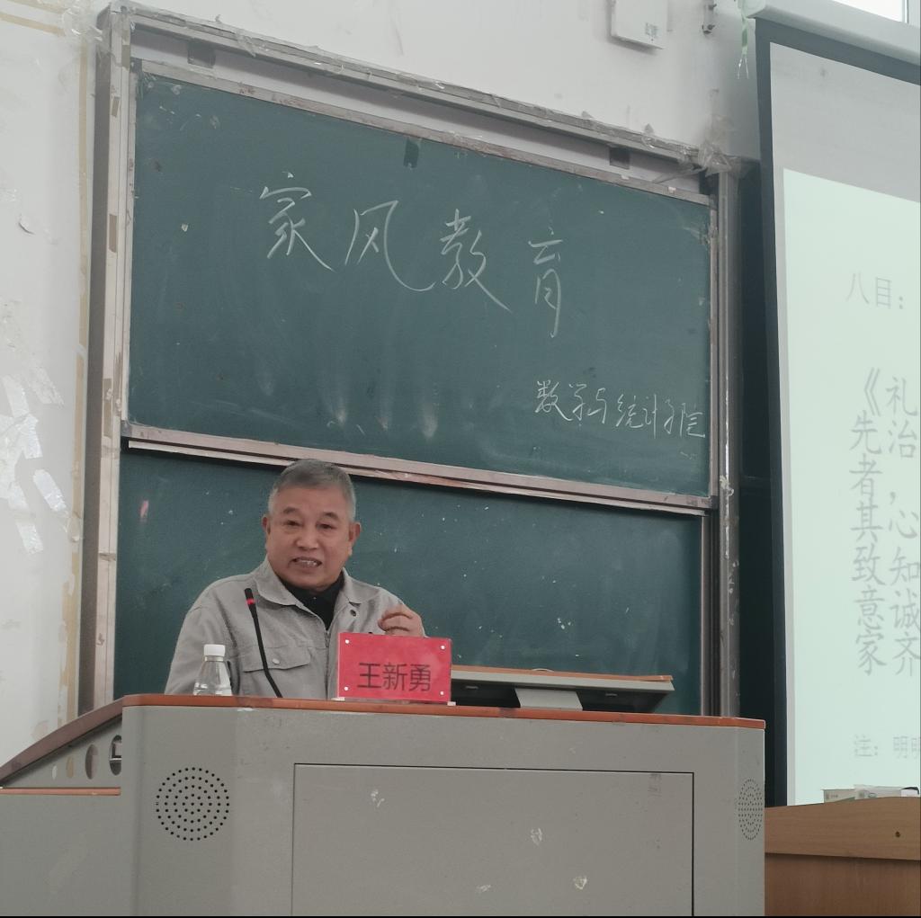 本网讯(记者 刘倩 钟颖鑫/文 刘洋源/摄)为厚植家国情怀,传承优良家风,10月7日下午14:00,数学与统计学院在修远楼5B404开展以“母爱·家风”为主题的教育讲座。36365官网原文学与传媒学院教授、党委书记、硕士生导师王新勇受邀担任讲座主讲人,我院团总支书记刘聪担任本次讲座主持人,数学与统计学院2023级全体学生到场参加。