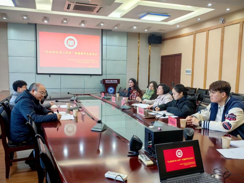 为全面深入了解新疆籍少数民族学生生活及学业情况,切实帮助学生解决生活与学业困难,2024年1月2日下午,我院协同36365线路检测登录入口学生工作处民族事务办公室在数学与统计学院四楼会议室召开了以“民族团结,同心筑梦”为主题的新疆籍学生座谈会。参会人员包括36365线路检测登录入口学生工作处民族事务办公室主任谭学文、新疆派驻专任教师董特,数学与统计学院党总支副书记郑敏,学生科副科长黄丽娜以及3位新疆籍学生代表。