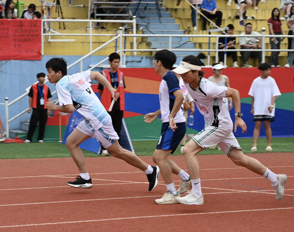 4x400男子接力赛的赛道上,他们如离弦的箭一般冲出起跑线,他们的身姿在阳光下显得格外矫健,在他们的不懈努力下获得第六名的好成绩。