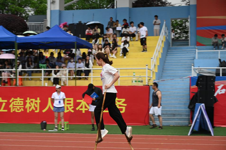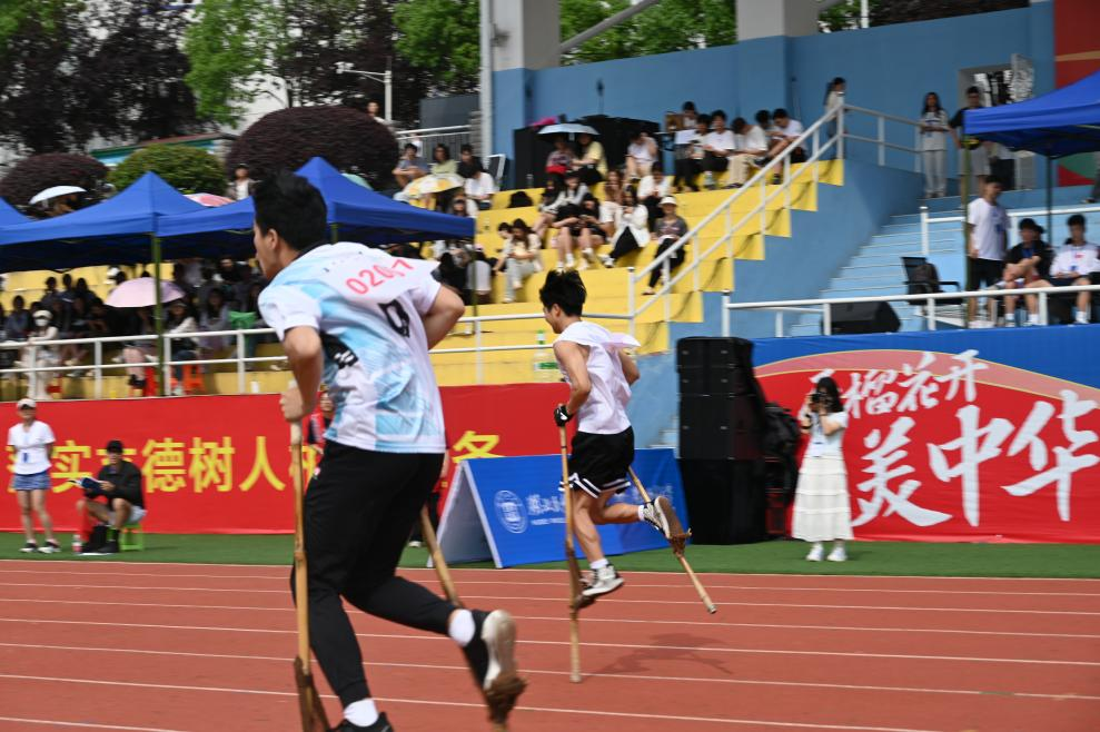 在60m高脚竞速决赛中,我院运动员李小龙、付欢分别取得了男子第四与女子第七的优越成绩。他们技术娴熟,动作潇洒自如,在赛道上风驰电擎。